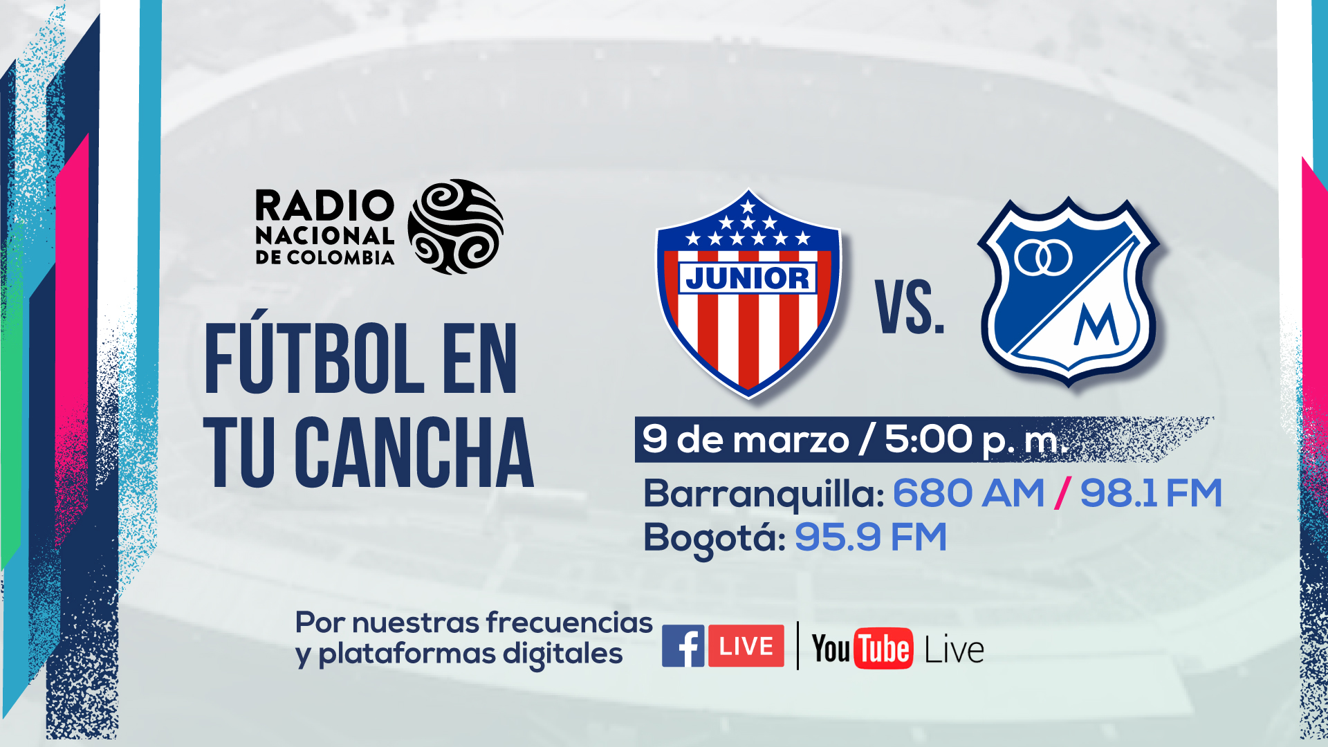 Junior de Barranquilla vs. Millonarios y Atlético Nacional vs. América de Cali, encuentros que garantizan una jornada llena de emociones, y todo lo podrá escuchar por la radio de la gente, Radio Nacional de Colombia.
