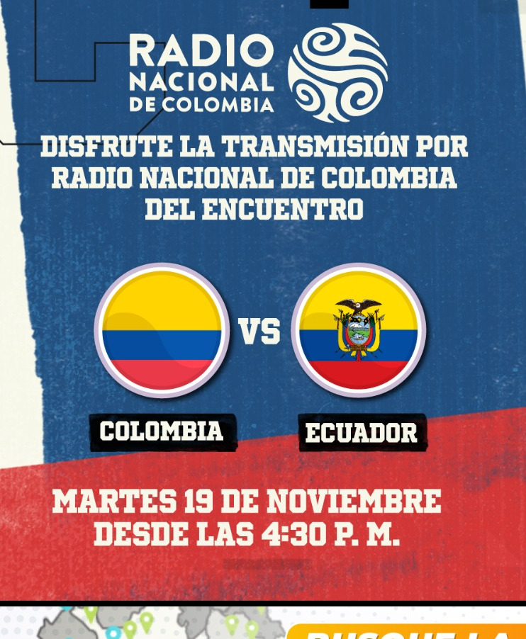 Colombia vs Ecuador, el próximo martes por Radio Nacional