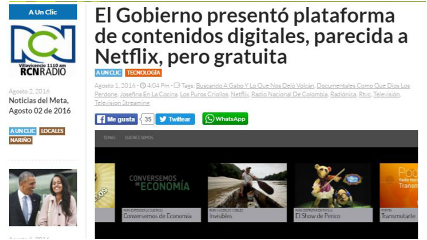 Como una nueva apuesta gratuita para los colombianos, el Sistema de Medios Públicos creó una plataforma de televisión digital parecida a Netflix, que presentará más de 400 producciones audiovisuales y sonoras.