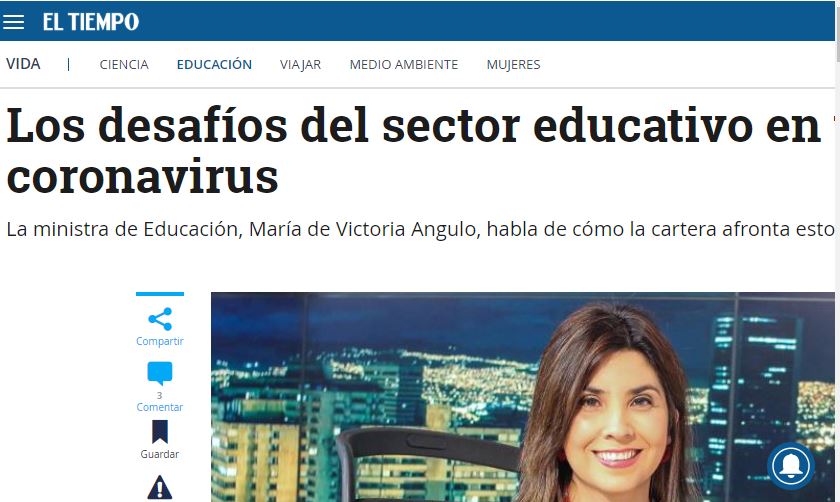 En la coyuntura se han implementado varias medidas para el sector frente al cuidado, el autocuidado y la distancia social, nuevas plataformas y contenidos como 'Aprender Digital' con más de 80 mil contenidos y con RTVC avanzamos en la estrategia 3,2,1 Edu-Acción con programación educativa 12 horas al día como espacios colaborativos que apoyen el proceso, después de la modificación del calendario académico el 15 de marzo por parte del Presidente.