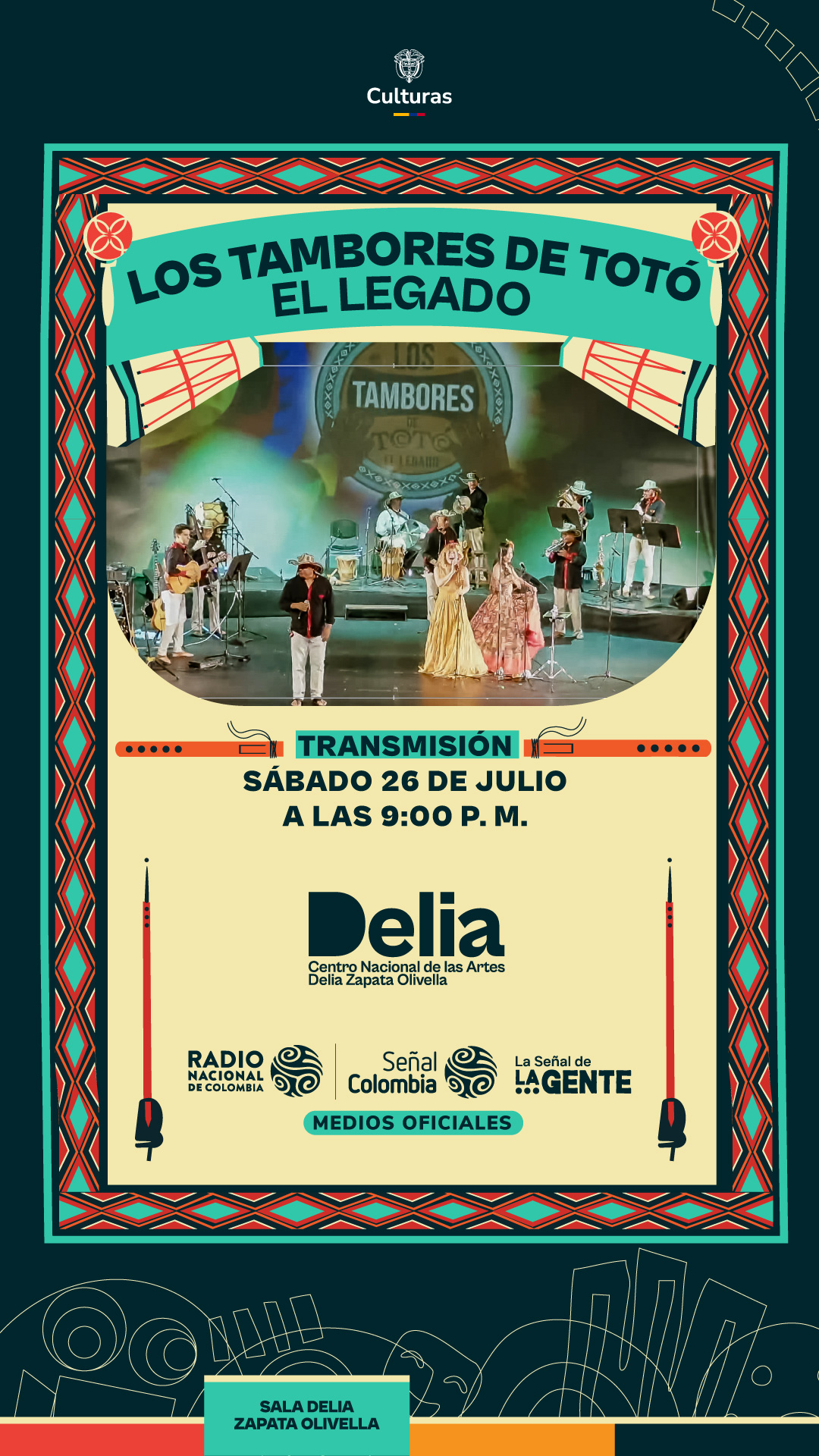 Enviado por afcastellanos@c... el Mié, 07/23/2025 - 14:38 Imagen: Enlace: "Los tambores de Totó", la primera transmisión pública como medios oficiales del Centro Nacional de las ArtesCategoría: noticias