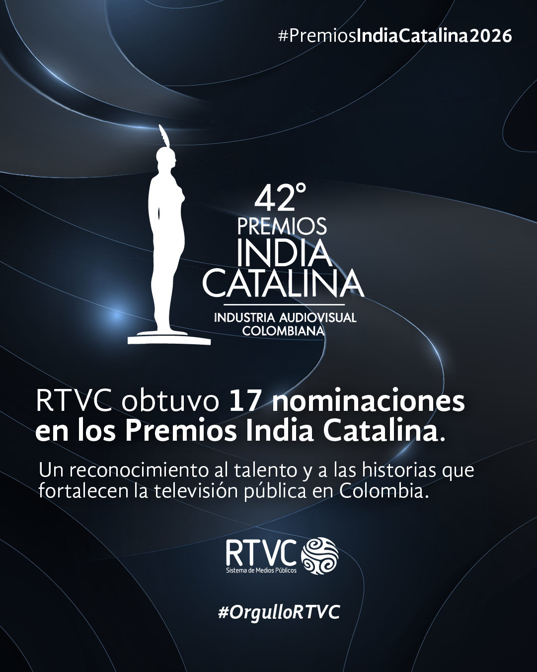 Enviado por afcastellanos@c... el Mar, 03/24/2026 - 21:06 Imagen: Enlace: RTVC logra 17 nominaciones en los Premios India Catalina 2026 y consolida su liderazgo en la televisión públicaCategoría: noticias