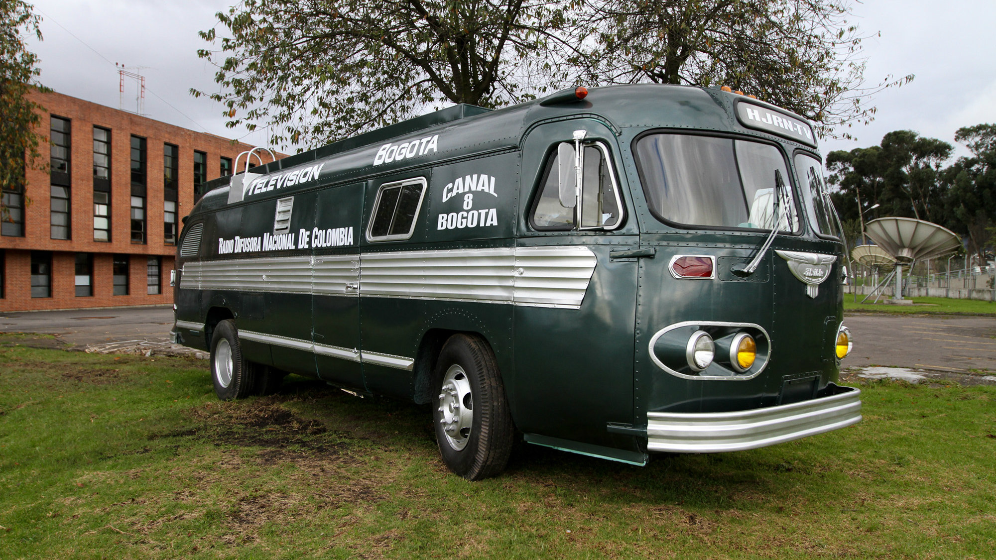 Esta primera unidad móvil de transmisión de televisión que tuvo el país, llegó por el puerto de Buenaventura en 1953.