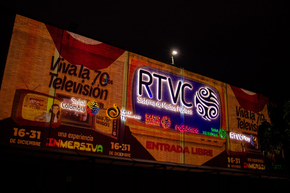 Proyección audiovisual espectacular que ilumina la fachada de RTVC.