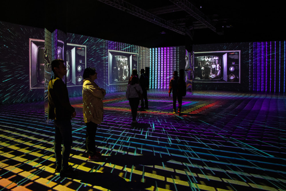 Recorrido sensorial con luces, sonidos y voces que transportan a los visitantes por las décadas más icónicas de la televisión.