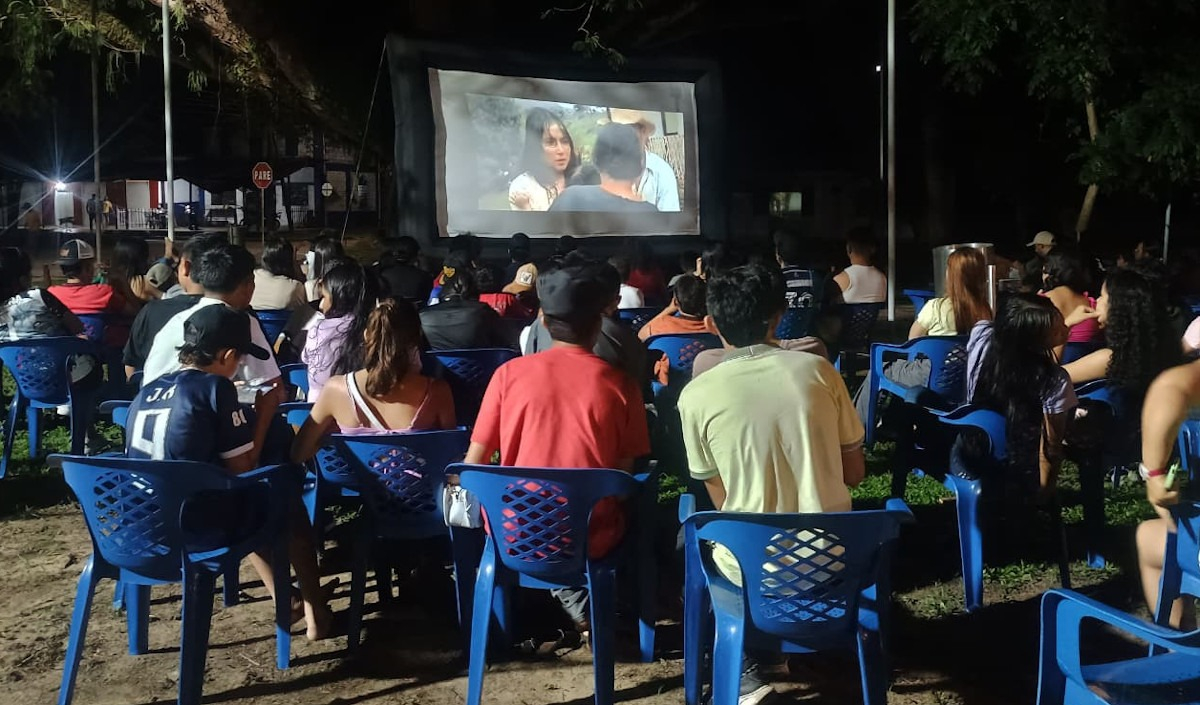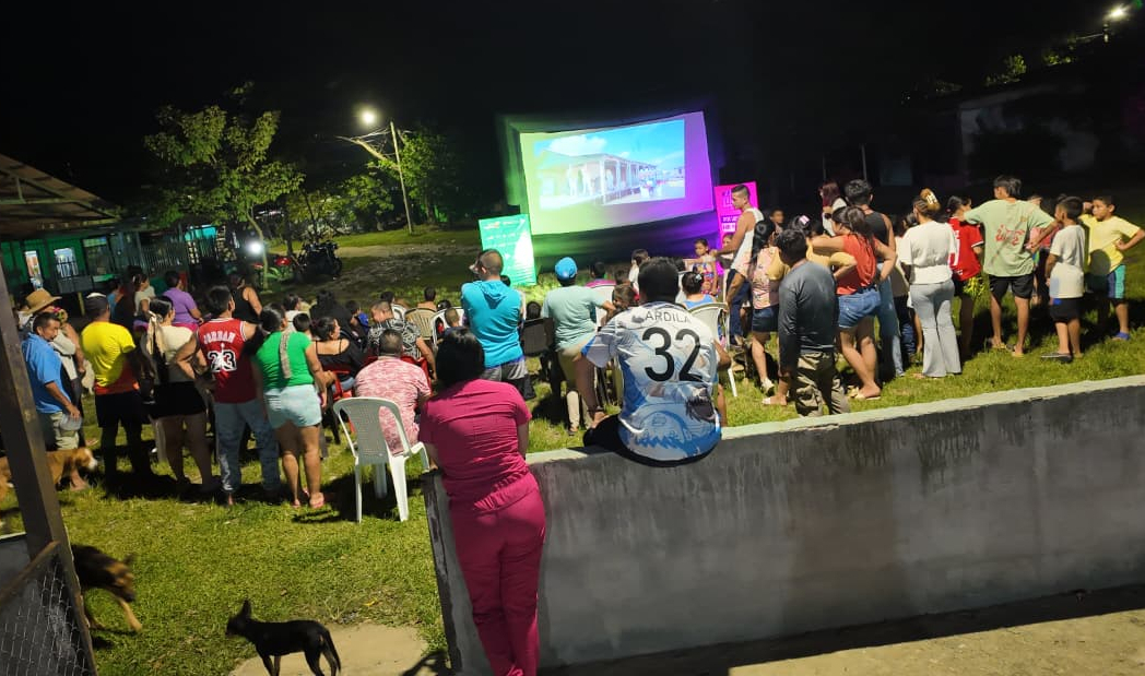 Municipio de Cravo Norte: uno de los más distantes de la capital araucana. Se instaló una pantalla móvil para crear una sala de cine al aire libre y se proyectó La Sargento Matacho.