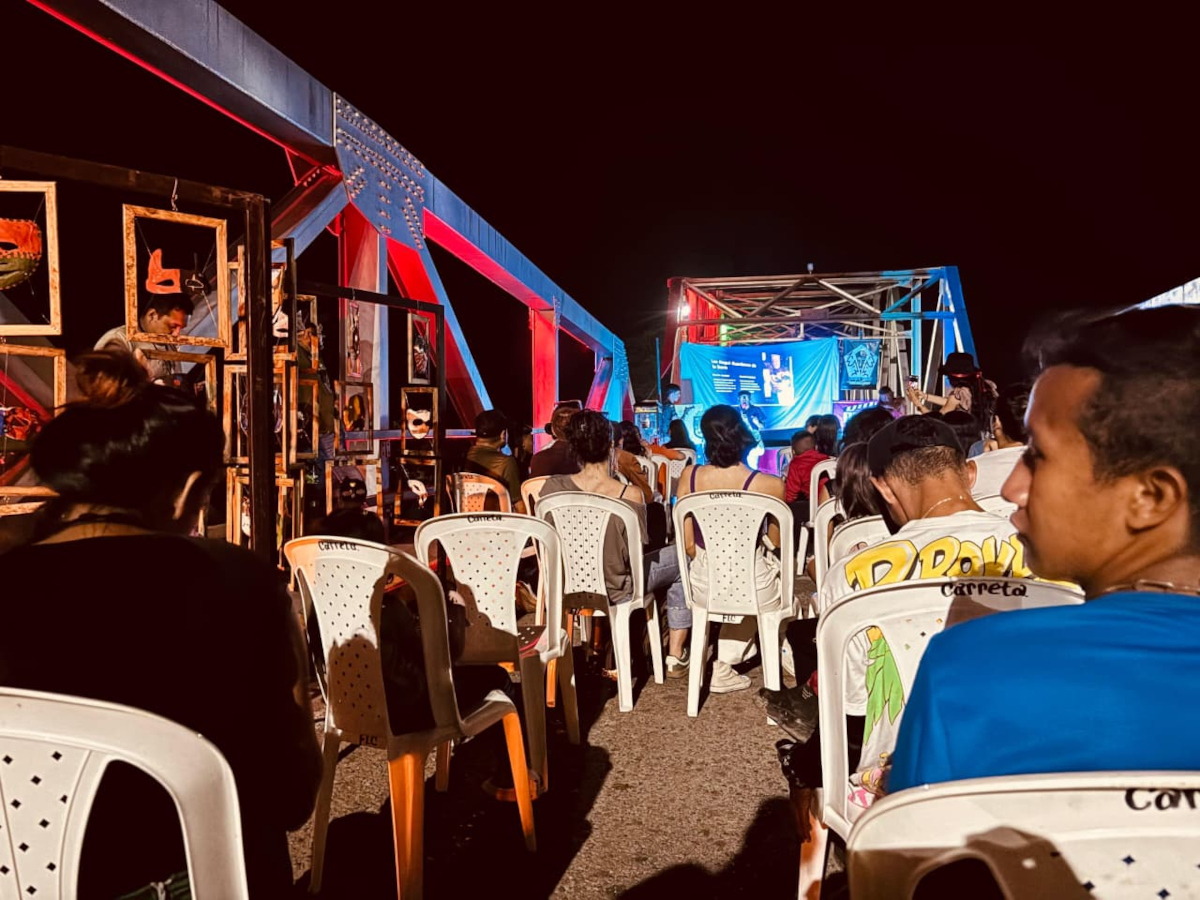 Puente Internacional José Antonio Páez: se montó la pantalla sobre el puente y se proyectó El silencio del río, acompañado por el grupo de rap, Campesinos Rap.