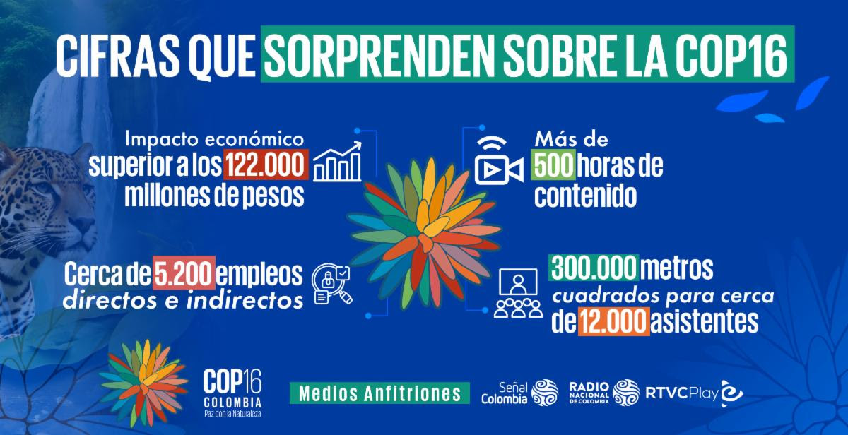 El canal Señal Colombia y la emisora Radio Nacional de Colombia son los medios de comunicación anfitriones de la COP16, y de manera convergente y en directo, junto a la plataforma gratuita de streaming RTVCPlay, generarán contenido continuo para transmitir a todas las regiones del país con la inmediatez y cercanía de la radio, la validación y credibilidad que solo da la televisión en vivo, y el complemento y acceso en cualquier lugar a través de dispositivos móviles.