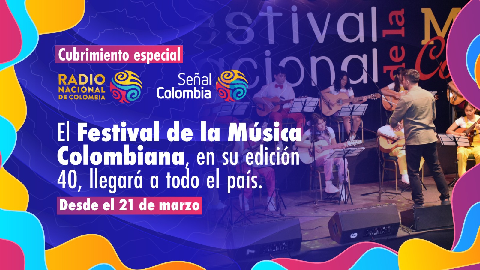 El Sistema de Medios Públicos realizará un cubrimiento especial para que la gente en las ciudades, municipios, centros poblados y zonas rurales, incluso en los lugares más apartados donde solo llega la señal de RTVC, viva esta gran fiesta cultural del 21 al 23 de marzo de 2026, que conmemora cuatro décadas exaltando la tradición de la música andina colombiana.