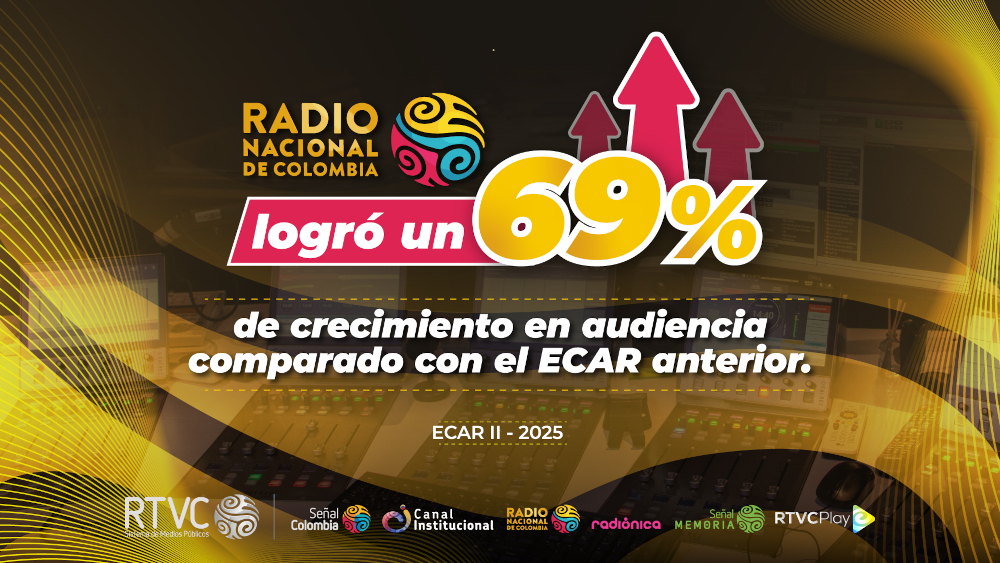 Según el ECAR, Radio Nacional de Colombia y sus 73 frecuencias, donde están incluidas las 20 Emisoras de Paz establecidas por el numeral 6.5 del Acuerdo de Paz que está cumpliendo nueve años, han tenido un crecimiento extraordinario en audiencia del 69%, comparado con el último reporte de este mismo año.